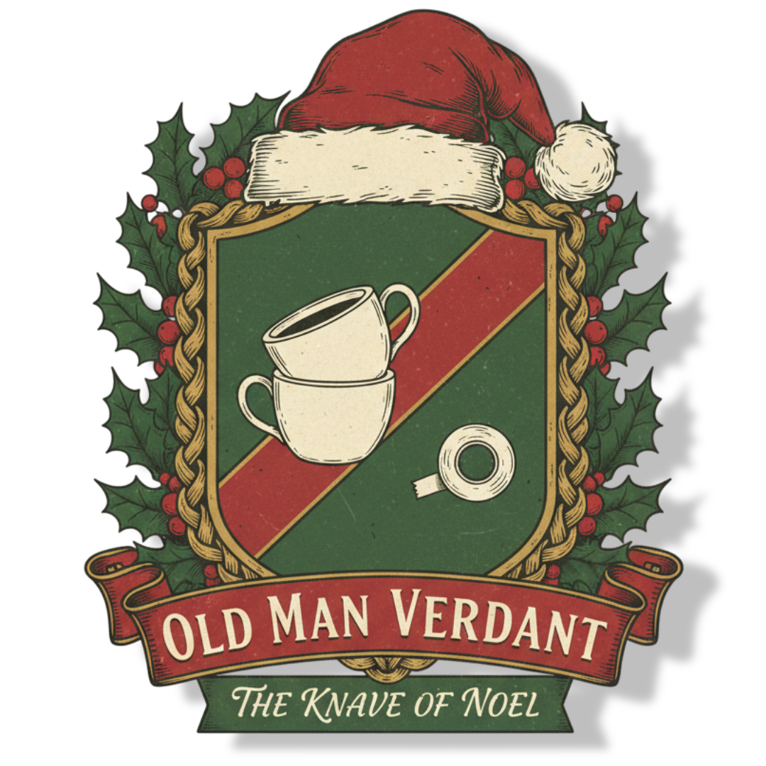 The green color of Verdant’s face is not just a stain, but the sign of a Broken Yule Oath. Centuries ago, Verdant was Santa’s head apprentice, but he grew tired of the endless niceness. He was caught attempting to replace the entire toy cargo with bags of itching powder. As punishment, Santa banished him to the Boughs of Misrule and cast a spell: his face would forever be the color of unripe juniper berries, marking him as the patron of all minor annoyances.