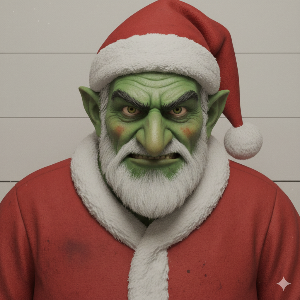 Before he was Santa Claus, Old Man Verdant was the original spirit of holiday ‘pranks-giving.’ His green face is said to be stained from sampling too many batches of ‘experimental’ punch—which usually contained too much crushed juniper berry and a dash of swamp root. He appears not to leave toys, but to rearrange things.